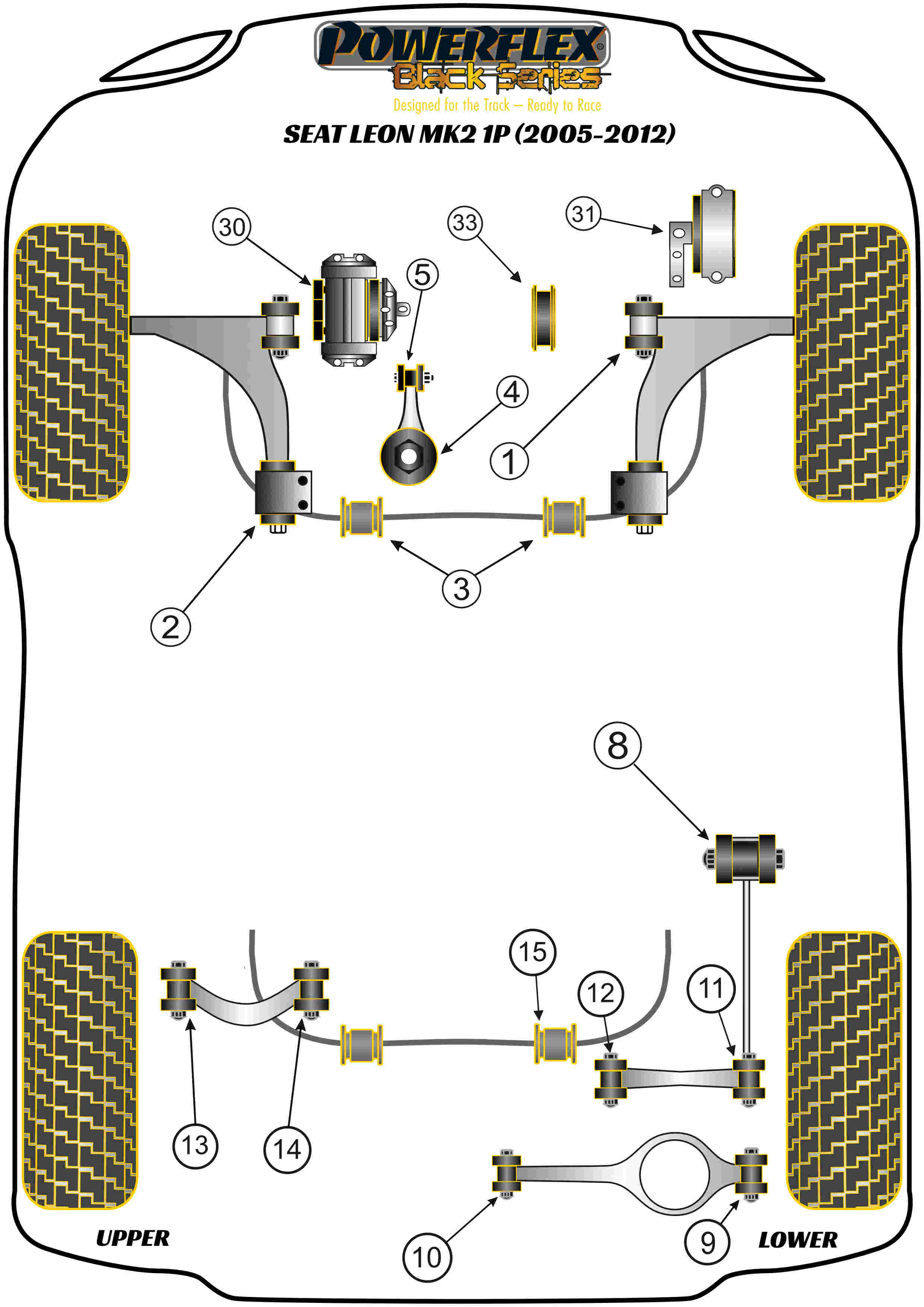 Zewnętrzne mocowanie dolnej tylnej sprężyny Powerflex Black Series Seat Leon Models & Leon Mk2 1P (2005-2012) PFR85-509BLK