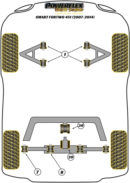 Tuleja mocowania tylnej belki Powerflex Black Series Smart ForTwo 451 (2007 - 2014) PFR68-130BLK