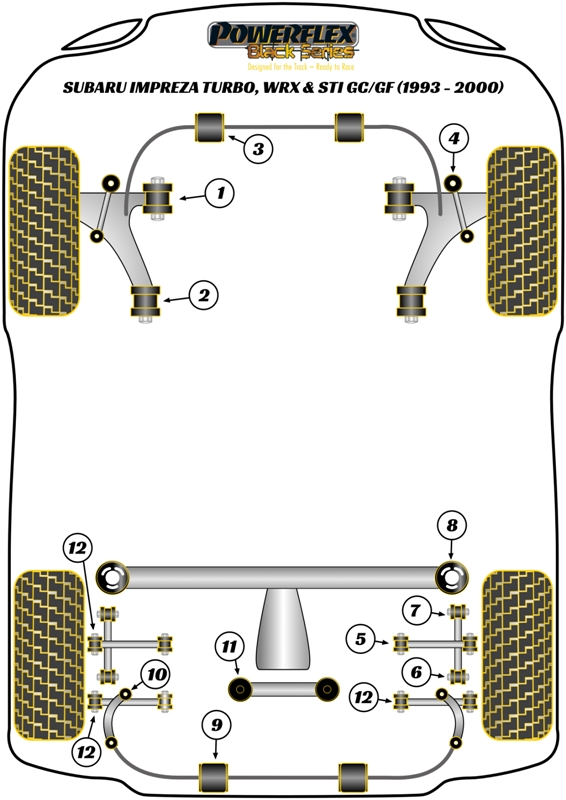 Wewnętrzna tuleja przednia tylnego łącznika bocznego Powerflex Black Series Subaru Impreza & Impreza Turbo inc. WRX & STi GC,GF (1993 - 2000) PFR69-111BLK