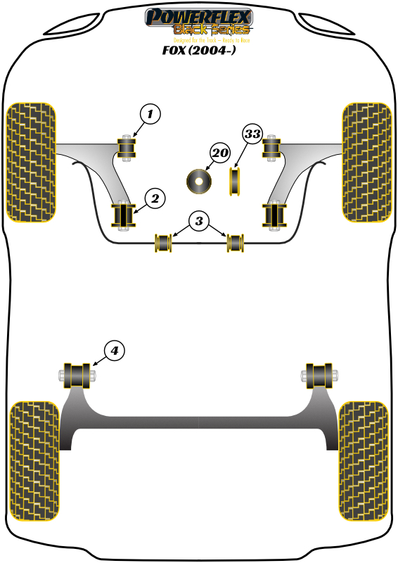 Przednia tuleja przedniego wahacza 30mm z regulacją kąta pochylenia Powerflex Black Series Volkswagen Fox (2003 - 2014) PFF85-201GBLK