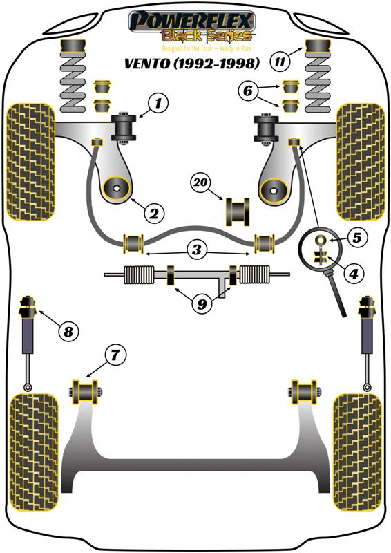 Przedni łącznik stabilizatora 20mm Powerflex Black Series Volkswagen Vento Models & Vento A3 (1992 - 1998) PFF85-209-20BLK