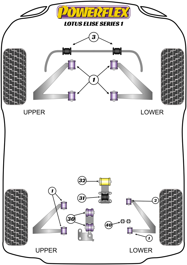 Przednia tuleja dolnego tylnego wahacza trójkątnego Powerflex Road Series Lotus Elise (1996 - 2021) & Series 1 (1996-2001) PF34-202