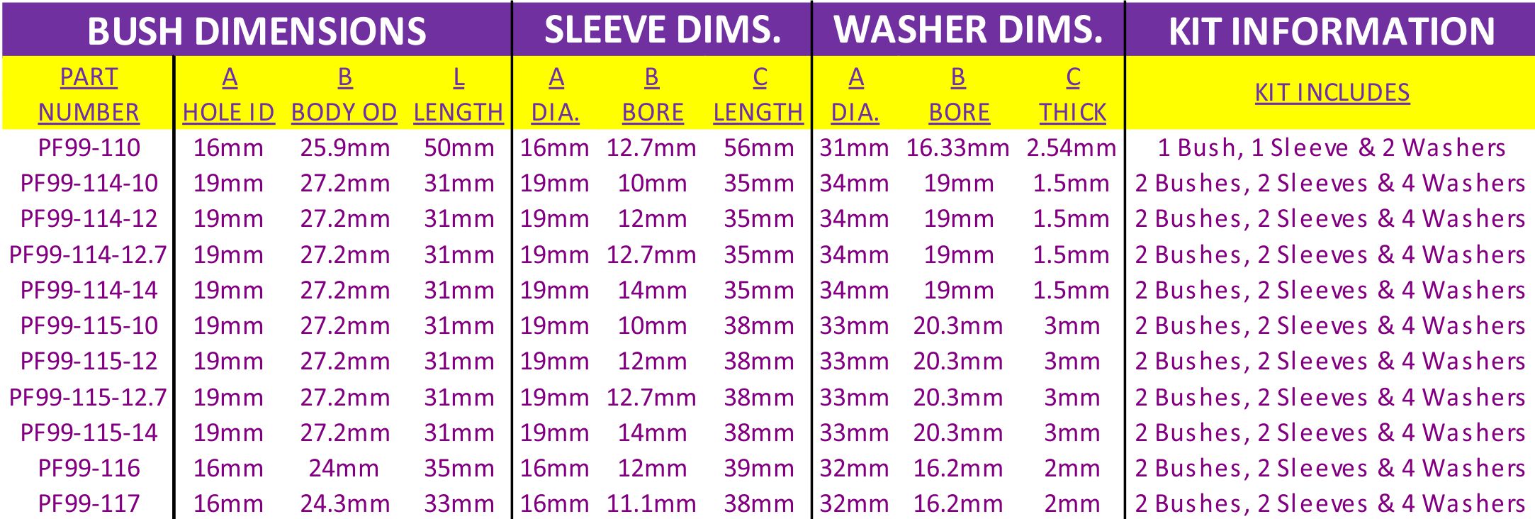 Uniwersalny zestaw tulei dla Westfield Powerflex Road Series Universal Bushes Parallel Bushes PF99-116