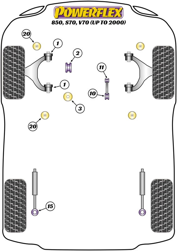 Górne przednie mocowanie przegrody 50mm Powerflex Road Series Volvo 850, S70, V70 (1991- 2000) PFF88-106